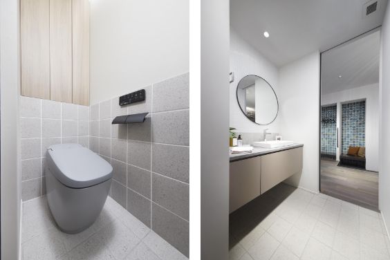 帰宅後すぐに手洗いができる洗面台と、お出かけの前の使用にも便利なトイレ。