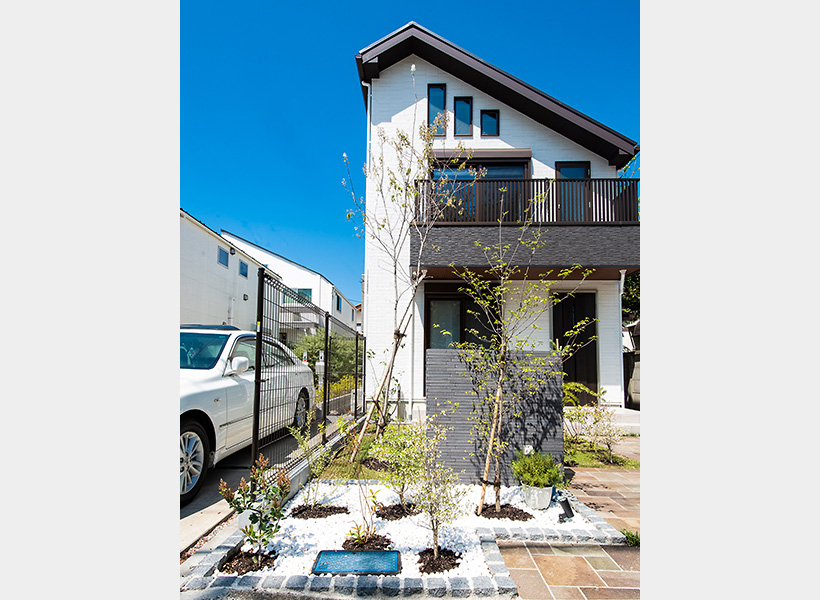 白を基調に、ブラウンの濃淡でシックにまとめた外観。