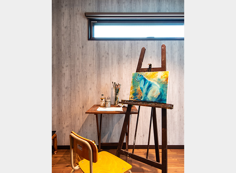 絵を描くためのアトリエは、南側の窓を小さく、そして照明にもこだわっています。