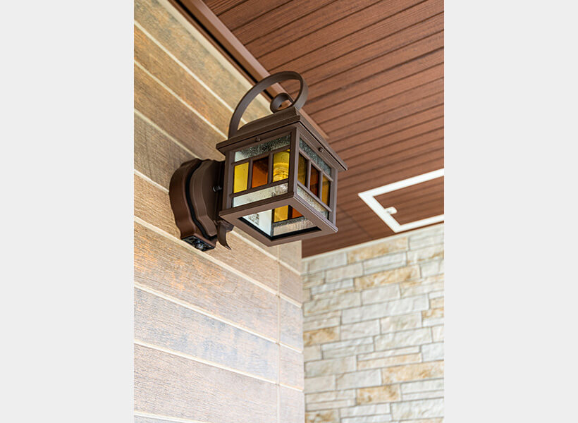 ほかの施主様のお住まいを見学した時に、奥さまが「これは!」という玄関灯に出会い、それをヒントに探されたそうです。優しい灯りが家族の帰りを暖かく迎えてくれるでしょう。