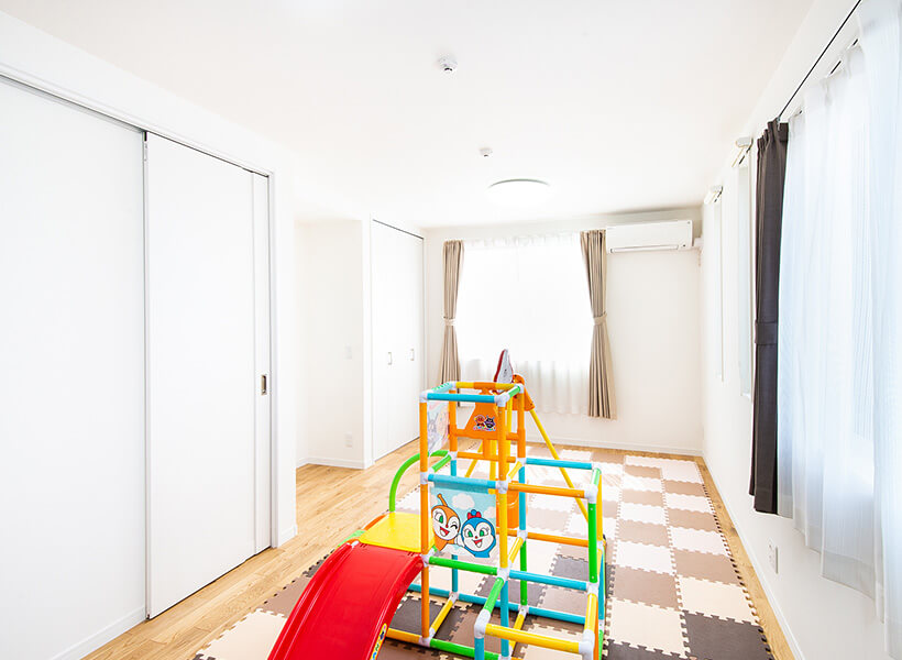 現在は子どもたちのプレイルームとして使用していますが、間仕切りをつけられるため、将来は二人のお子さまの部屋としての利用をお考えです。