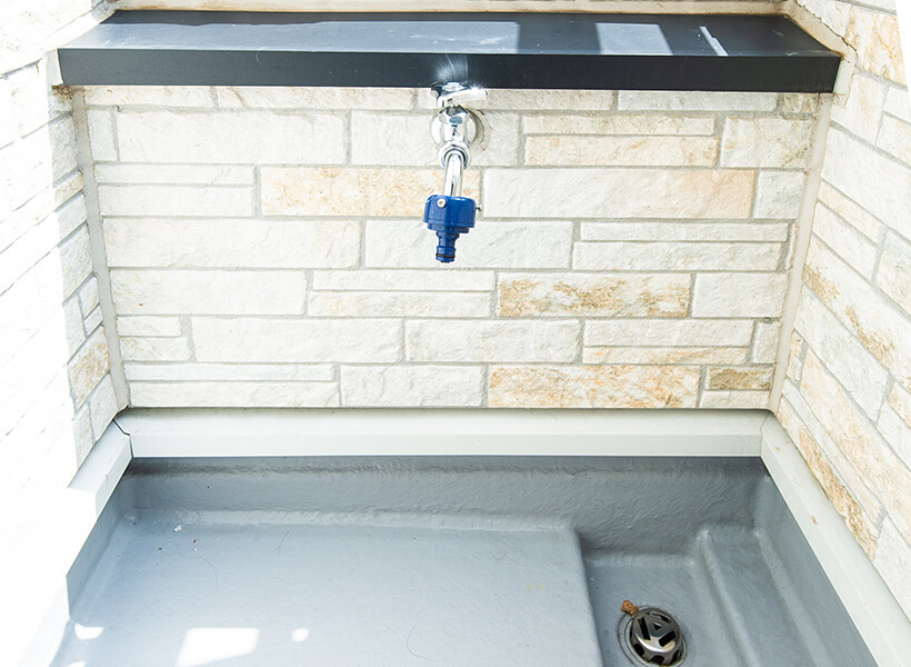 6帖超の広くて明るいバルコニー。お子さまたちがプールで遊べるように水道も完備。2階にあるため人目や、水跳ねを気にせず安心して遊ぶことができます。また、家族4人分の洗濯物を干すにも充分な広さで「気持ちよく干せる。」と奥さま。洗濯機は1階にありますが、アクセスがよく苦もないそうです。