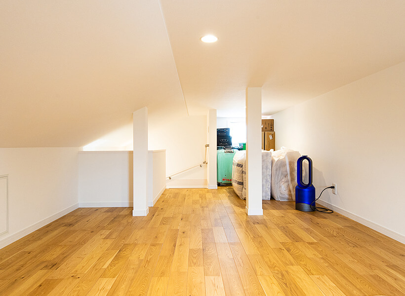 11帖超の広いソライオは、大容量の収納スペースになります。お子さまの成長とともに、増えてゆく季節のものや思い出の品をきれいに収められて、すぐに探すことができます。2方向に窓があるため風通しがよいのもポイントです。