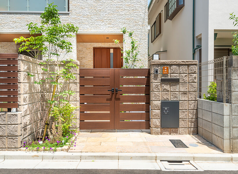 横方向のスリットによって、程よく視線を遮りながらも開放感のある外構は、ご近所づきあいにも一役買っています。