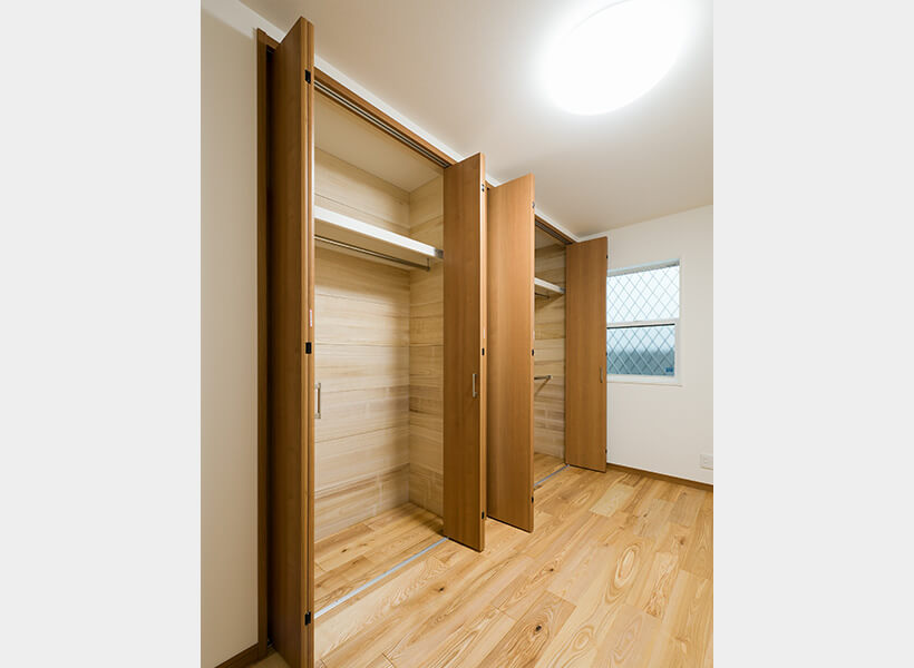 壁一面の大型クローゼット収納は奥さまのご希望です。