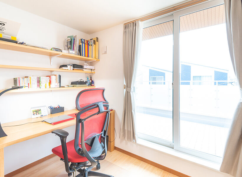 奥さまのお部屋として使用されています。「普段は和室を寝室にしていますが、お客様が泊まられる際は和室を使って頂き、私たちはそれぞれの部屋で休みます。また、風邪をひいた時などにもひとりで休める部屋が必要なので、布団を敷けるスペースを確保しています」と奥さま。
